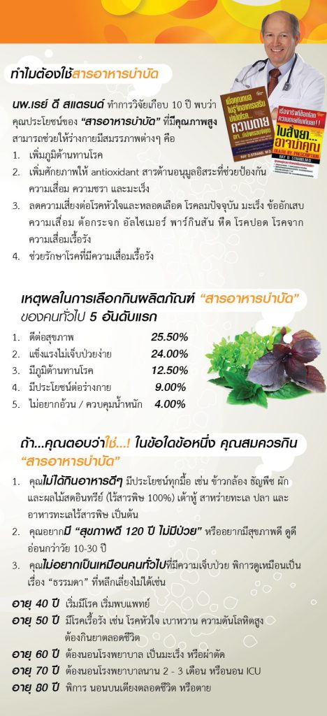 ทำไมต้องใช้สารอาหารบำบัด ? นพ.เรย์ ดี สแตรนด์ (Ray D. Strand, M.D.) แพทย์ผู้เชียวชาญ และผู้แต่งหนังสือ เมื่อคุณหมอไม่รู้จักอาหารเสริม ความตายอาจ กำลังครอบงำคุณและ ใบสั่งยา อาจฆ่าคุณ ท่านได้ทำการวิจัยเกือบ 10 ปี พบว่าคุณประโยชน์ของ “สารอาหารบำบัด” ที่มีคุณภาพสูง สามารถช่วยให้ร่างกายมีสมรรถภาพต่างๆการสั่งซื้อ-จัดส่งสินค้า ของ GEL PLUS